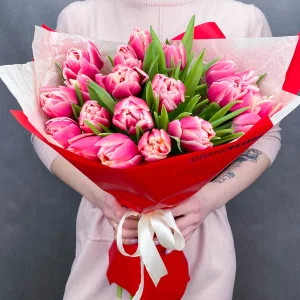 Любимые моменты – букет с розовыми кустовыми розами и тюльпанами