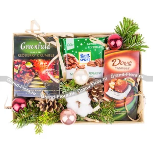 Снежный лес - новогодняя коробка с мандаринами и конфетами