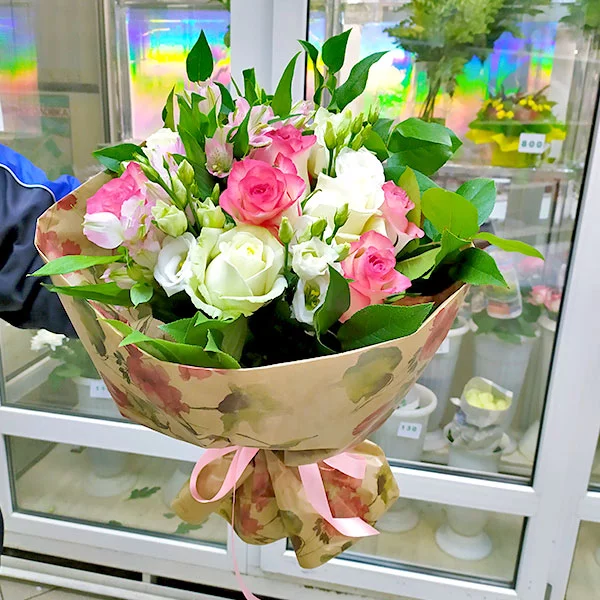 Букет привезли красивый, претензий нет, а вот с доставкой задержались на 10 минут.